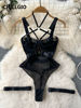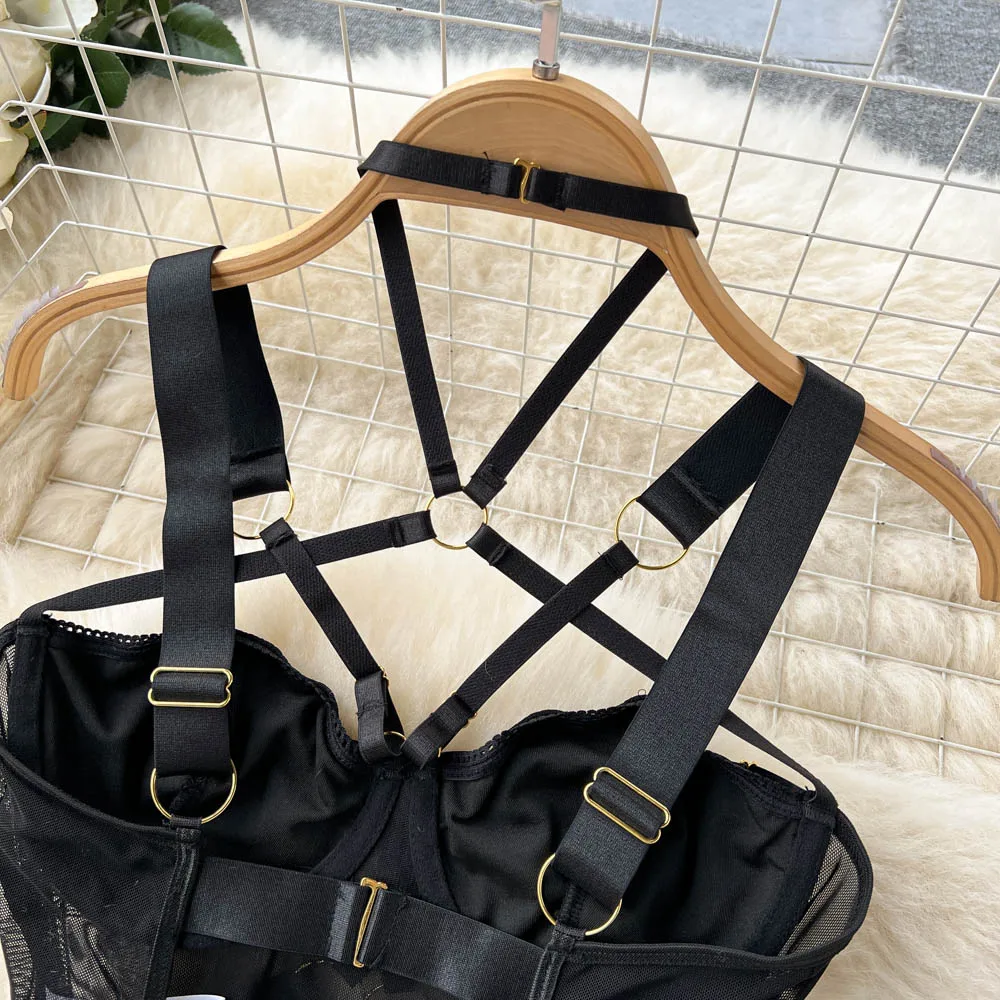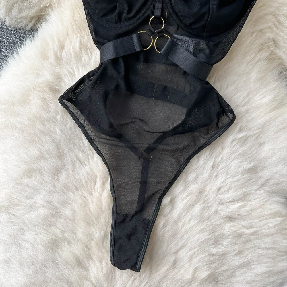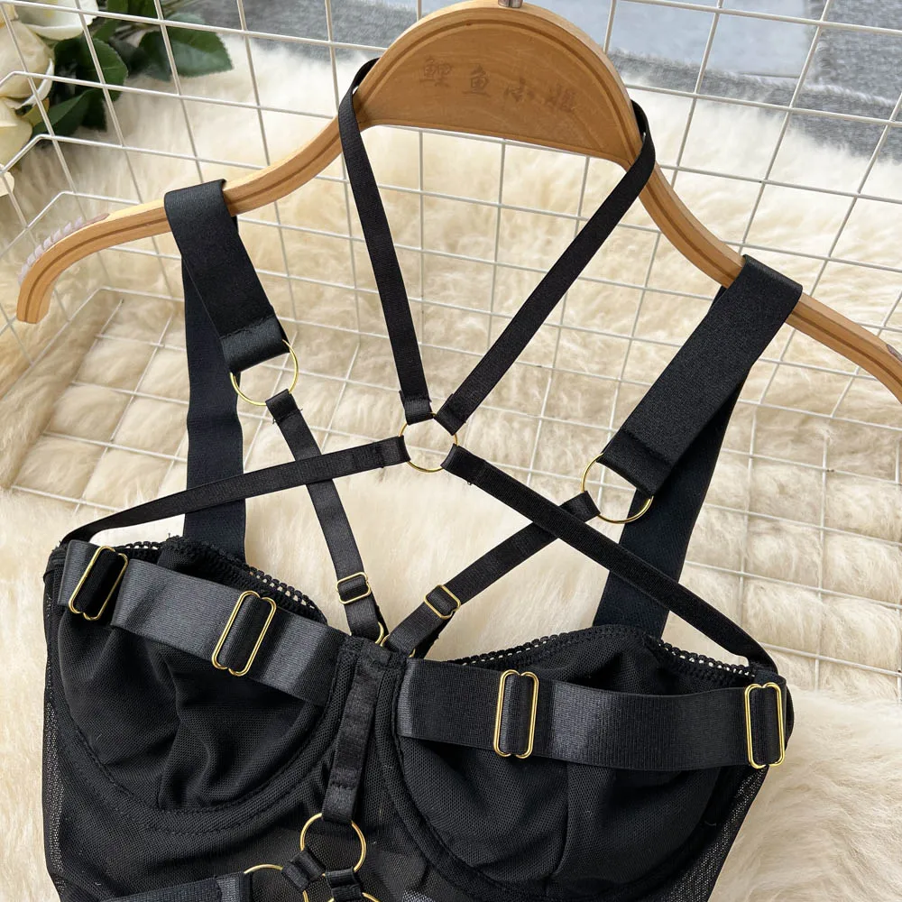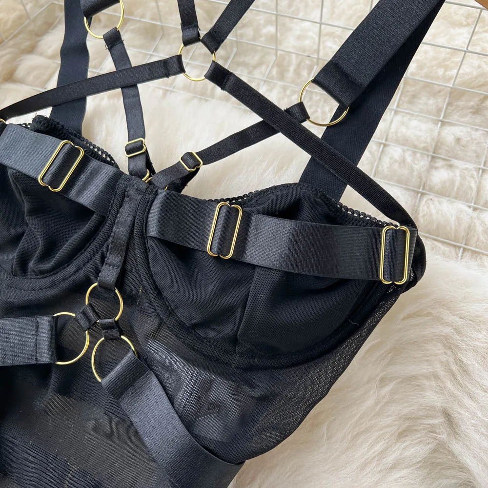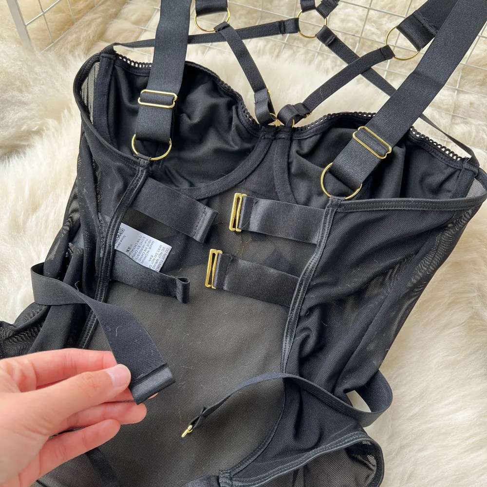 Body Singre to zmysłowa i elegancka bielizna o odważnym, nowoczesnym designie. Wykonane z delikatnej siateczki oraz elastycznych taśm, podkreśla kobiecą sylwetkę, zapewniając jednocześnie komfort noszenia. Metalowe, złote sprzączki i pierścienie nadają mu wyrazistości, a regulowane ramiączka i paski pozwalają na idealne dopasowanie do ciała. Wycięty krój oraz finezyjne detale sprawiają, że Body Singre doskonale sprawdzi się zarówno na wyjątkowe okazje, jak i na co dzień, dodając każdej stylizacji odrobinę drapieżności i elegancji.