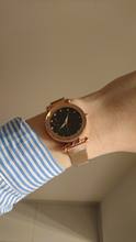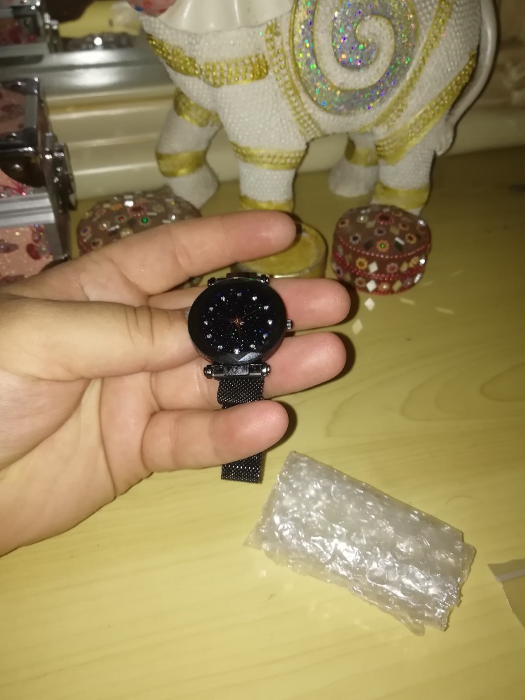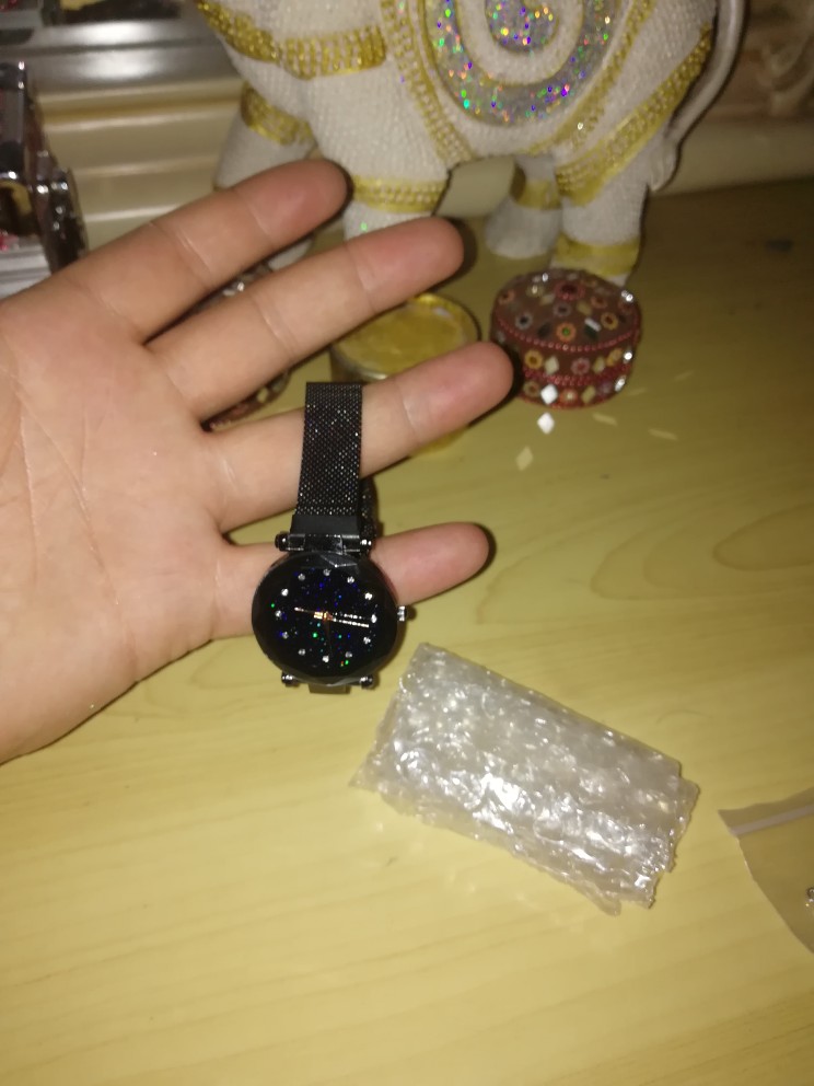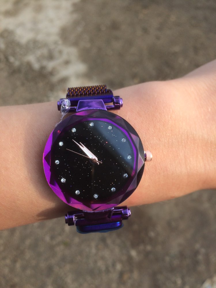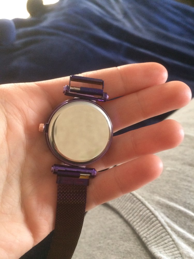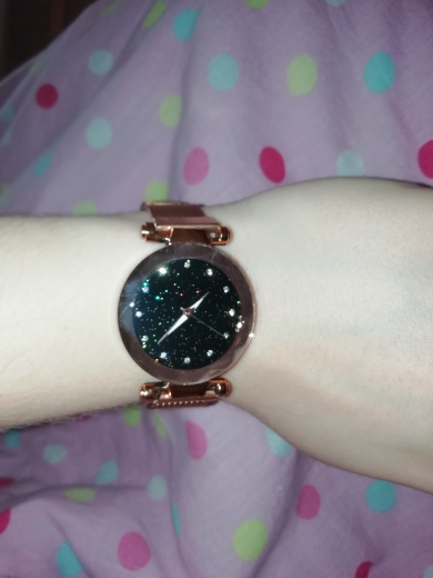 Wygląda dokładnie tak, jak na zdjęciach. Działa, magnes trzyma mocno zegarek na nadgarstku. Jestem zadowolona z zakupu.