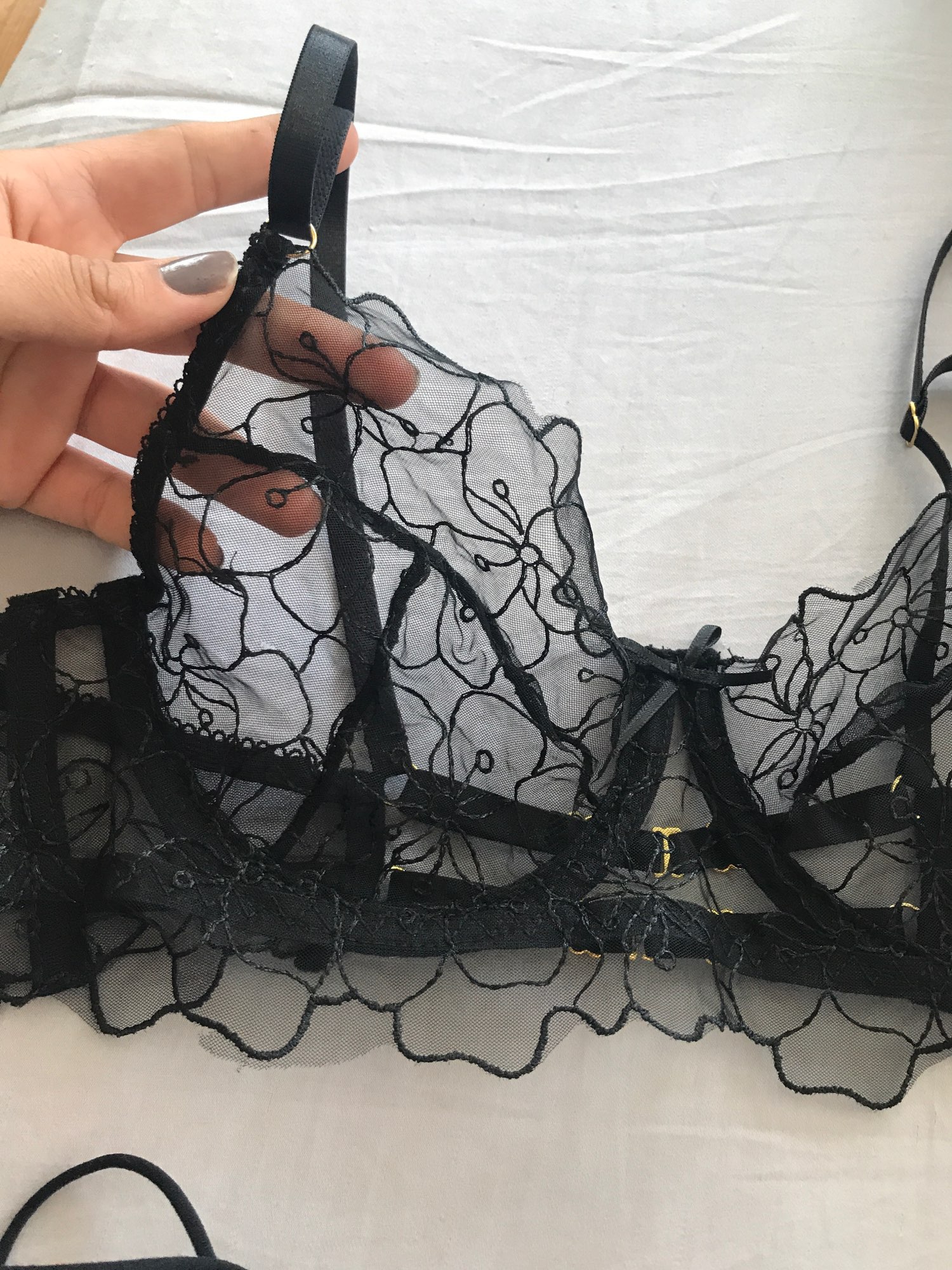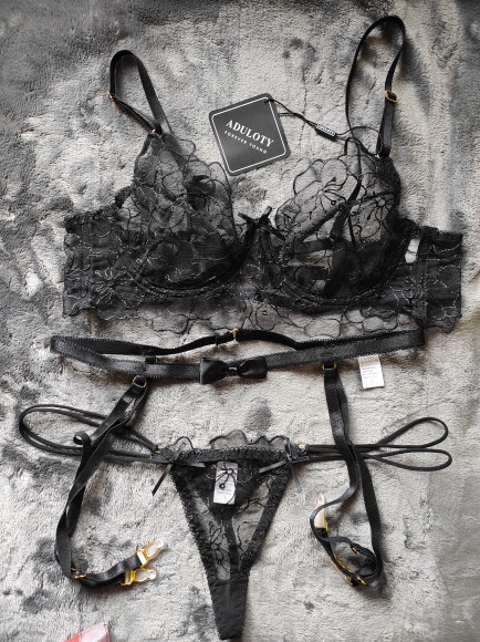 Niesamowita jakość! Bardzo dobrze. Bardzo ładny, prześwitujący biustonosz, majteczki też świetnie się prezentują