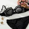 Koronkowy Komplet Bielizny Noemi wykończony uroczymi kokardkami na paseczkach, pomiędzy miseczkami oraz na majtkach. Biustonosz typu Push-Up wsparty fiszbinami zapinany na dwie haftki. Rozmiar majtek jest automatycznie dobrany do rozmiaru biustonosza.