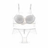 Seksowny komplet bielizny z ozdobnymi paseczkami które pięknie podkreślają biust. Biustonosz z dołu posiada skromną koronkę która delikatnie opłata ciało.