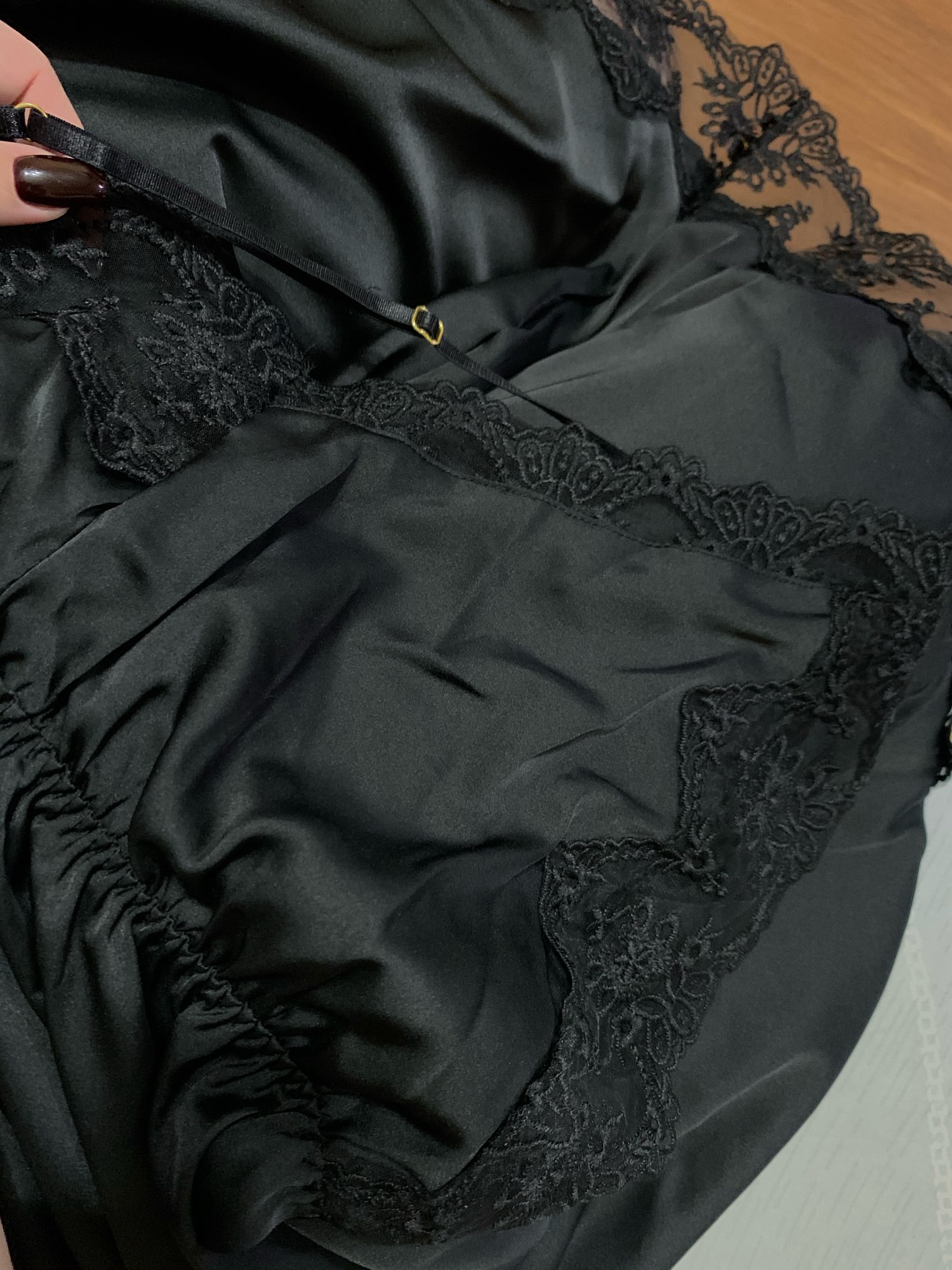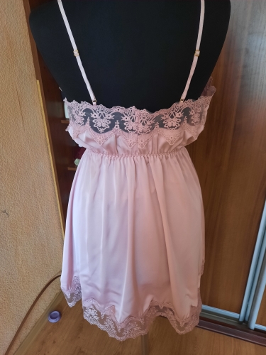 Koszula nocna Lanceria wykonana z satynowej tkaniny, przyozdobiona koronką. Ramiączka są regulowane. Luźny krój i ściągacz w talii zapewni komfort noszenia. Wyjątkowo kobieca i zmysłowa koszula nocna Lanceria doda uroku każdej kobiecie.