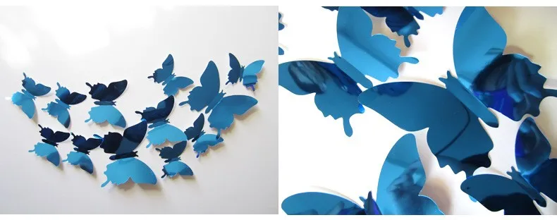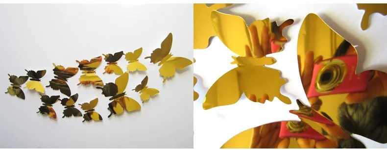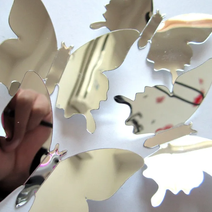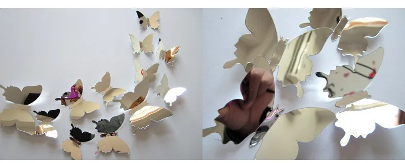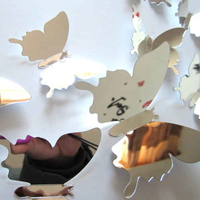 12 sztuk lustrzanych motyli, dekoracje do domu