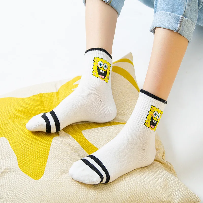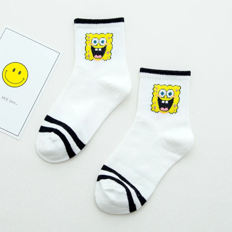 Urocze krótkie skarpetki z motywem z jednej z popularniejszych bajek z uroczą gąbką oraz rozgwiazdą czyli SpongeBob! Jeżeli jesteś fanem tej bajki koniecznie musisz je mieć w swojej szafie! Skarpetki dostępne są w jednym uniwersalnym rozmiarze. Długość 19cm