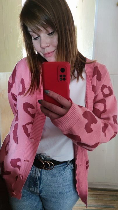 Uroczy zapinany sweterek Leopard, ozdobiony worem w cętki w kilku wariantach kolorystycznych. Idealny na chłodniejsze dni.