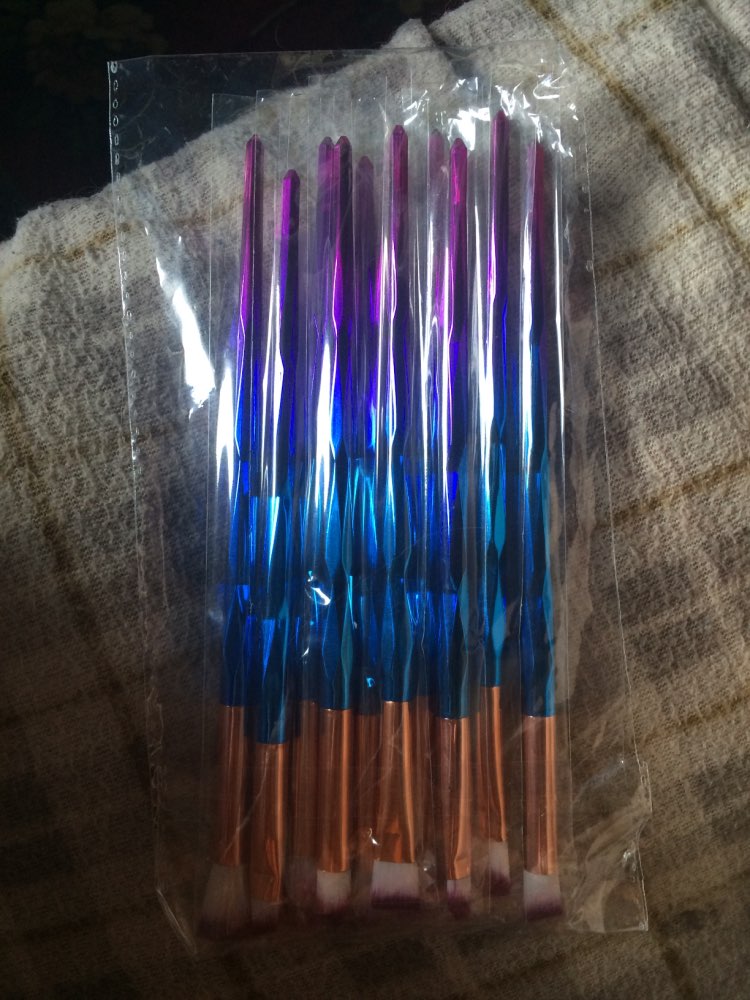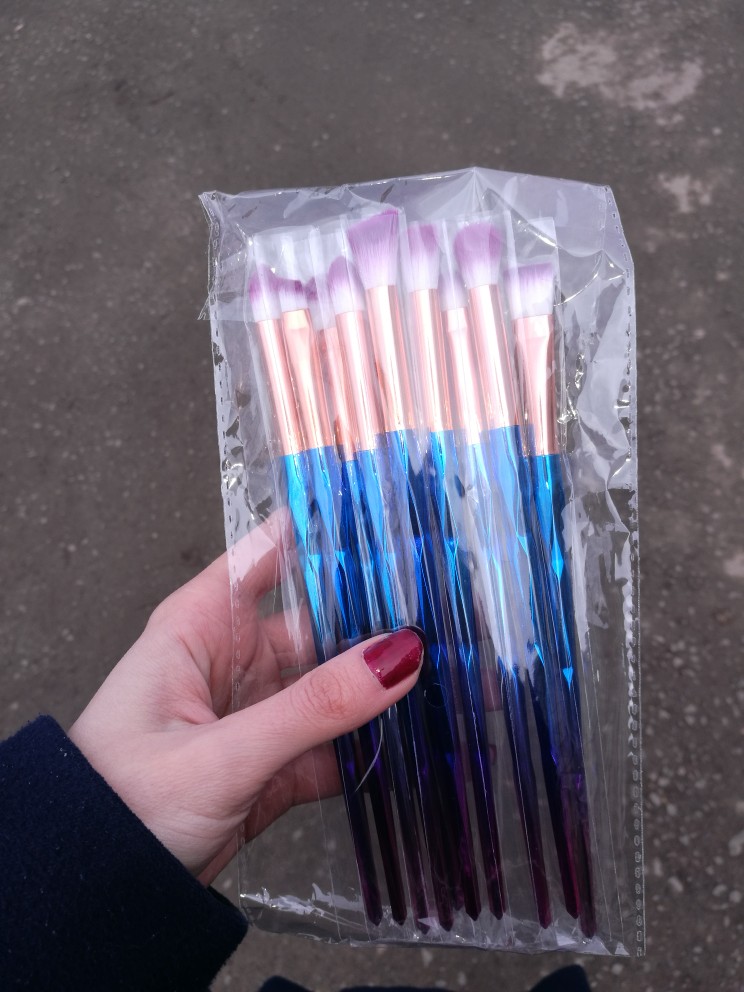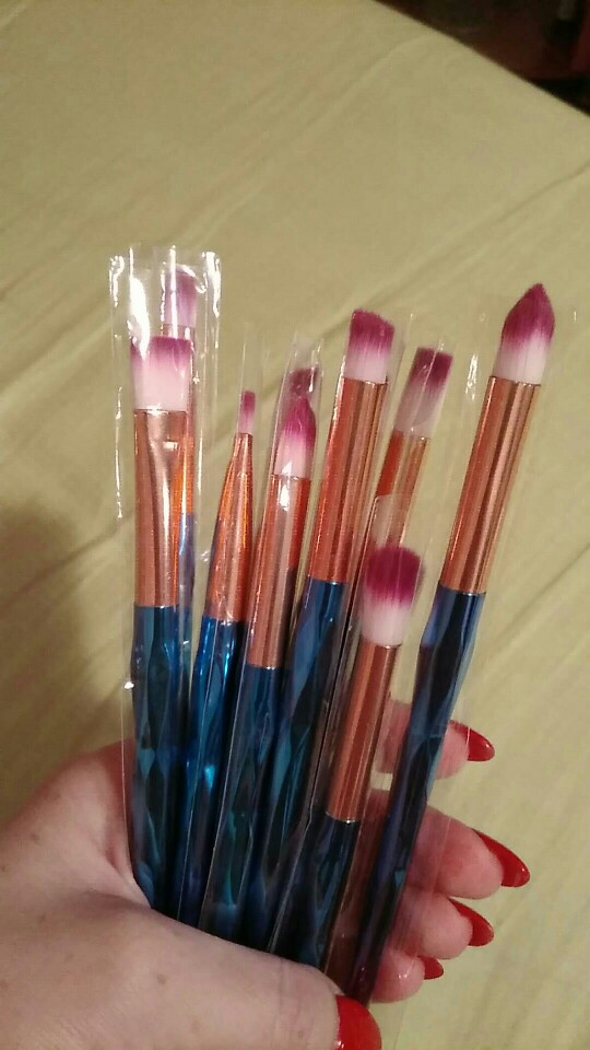 10 super pędzli. Wygodny i piękny uchwyt. Włosie jest miękkie.